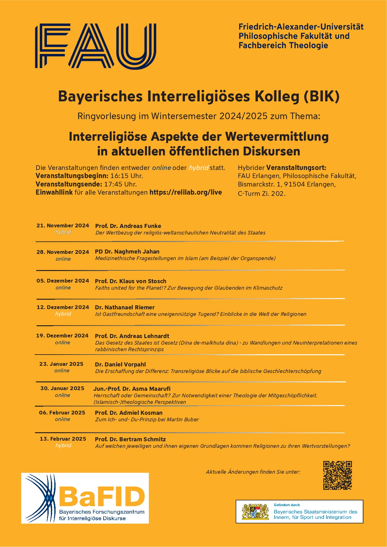 This winter semester 2024/2025, BaFID is hosting a public lecture series on the topic of “Interreligious aspects of communicating values in current public discourses”.