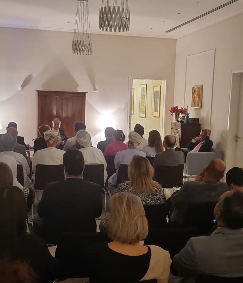 At the invitation of the University of Nizwa Prof. Georges Tamer, the founding director of BaFID, visited Oman from 13 to 20 December 2024. During his stay, he met Mr Muḥammad al-Mālkī, the director of the Department of Interfaith Dialogue and Religious Tolerance at the Ministry of Endowments and Religious Affairs. Together they discussed opportunities for cooperation between the Department for Interreligious Dialogue and BaFID. At the invitation of the German ambassador in Muscat, Dr Dirk Lölke, Prof. Tamer gave a lecture at the ambassador’s residence on 18 December. Under the title ‘Peacemakers or Conflict Agents? Religions in Discourse’, he presented the potential for peace that the monotheistic religions of Judaism, Christianity, and Islam can develop if their interconnections and mutual relationships are revealed. Prof Tamer also took this opportunity to present BaFID and its projects, which met with a great response. During the event, Prof Tamer also presented Ambassador Lölke with BaFID’s Interreligious Calendar 2025. In the ensuing discussion, the importance of academic engagement with interreligious discourse in the service of society was emphasized several times.