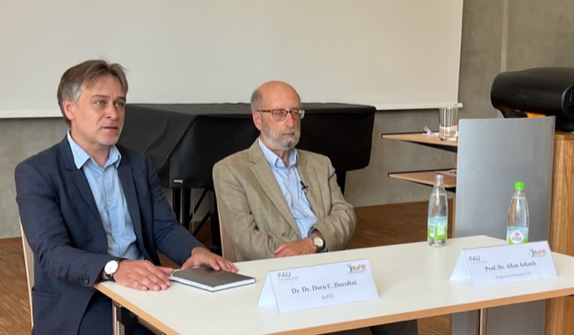 Prof. Dr. Allan Arkush (Binghamton University) spoke about the concept of modernity in Judaism. Dr. Doru Constantin Doroftei (left, FAU) moderated the discussion.