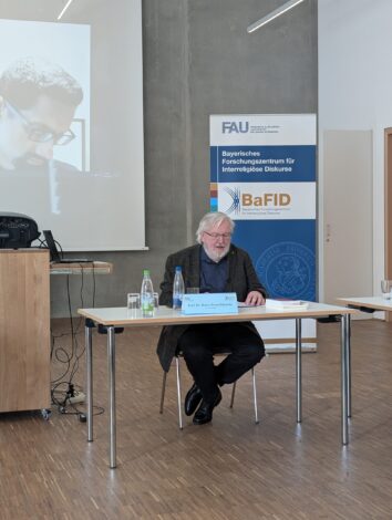 From an Islamic perspective, Prof. Dr. Nader El-Bizri (in the background, University of Sharjah/UAE) spoke about the concept of rationality. The moderator was Dr. Pascal Held, FAU.