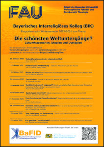 Wir wollen das Thema in dieser Vorlesungsreihe aus verschiedenen Perspektiven betrachten wie aus der Sicht religiöser Traditionen, der Religionswissenschaft, der Literatur, aus dem Blickwinkel der Soziologie, Geschichte und Politik.
